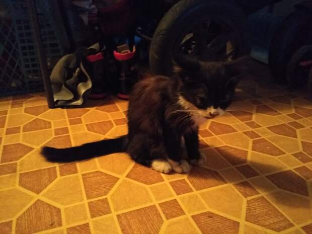 Вот такую "чмындю" принёс домой наш папа! Блох больше, чем шерсти! Грязнющая, глазик больной, носик сопливый. От голода и усталости малышка сидела в прихожей и даже лапкой в сторону комнат не двигала! Пока я стояла рядом с ней и пыталась сообразить с чего начать: мыть, кормить или, вместе с папой, за дверь веником выгнать?