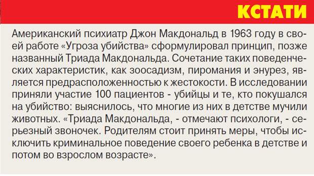 Психологи отмечают: за проявлениями агрессии у детей нужно следить с раннего возраста. Жестокость к животным зачастую перерастает в агрессию к людям.